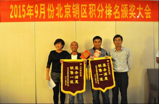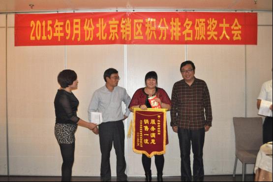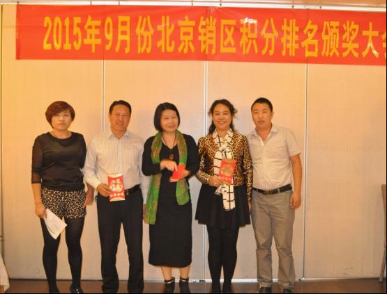 會(huì)議的第二階段,大會(huì)隆重舉行了2015年度9月份北京區(qū)積分排名頒獎(jiǎng)儀式,將大會(huì)氛圍推向最高潮,獲獎(jiǎng)的朋友們喜不自勝,在現(xiàn)場(chǎng)熱烈的掌聲中分享獲獎(jiǎng)感言以及優(yōu)秀的經(jīng)營(yíng)理念。未獲獎(jiǎng)的朋友紛紛表示,將積極進(jìn)取做好北京區(qū)市場(chǎng)銷(xiāo)售,下次走上領(lǐng)獎(jiǎng)臺(tái)?! ?/p>